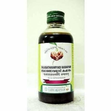 Vaidyaratnam Balasathavaryadi Kashayam is an herbal tonic. It contains water-soluble active principles. The key content of the supplement is