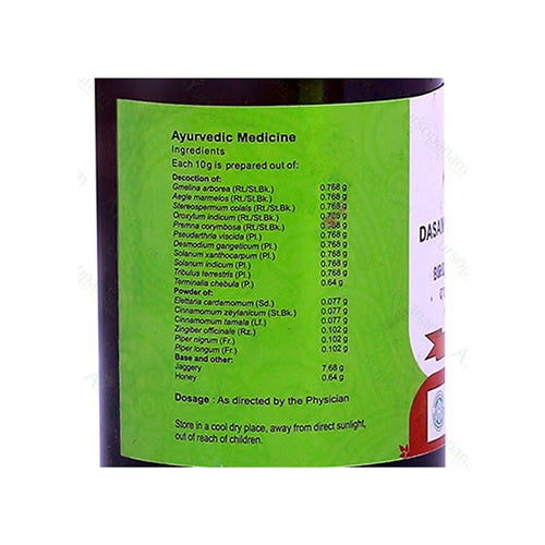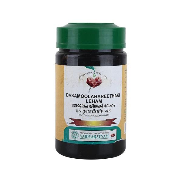 Vaidyaratnam Dasamoolahareethaki Leham is enriched with herbal goodness. This all-natural decoction is made with